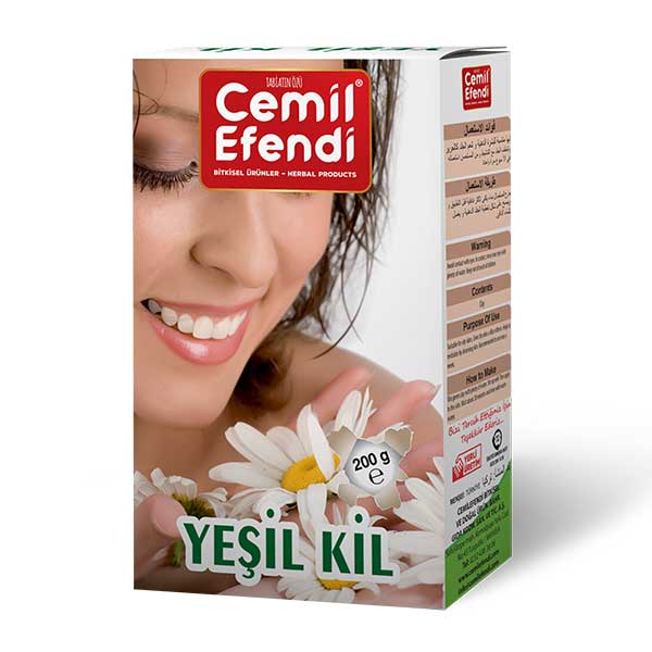 Meng een voldoende hoeveelheid groene klei met water om het masker te bereiden. Breng een dunne laag aan op een gereinigde huid. Laat ongeveer 20 minuten inwerken en spoel daarna af met lauwwarm water. Aanbevolen gebruik: 1 keer per week.
